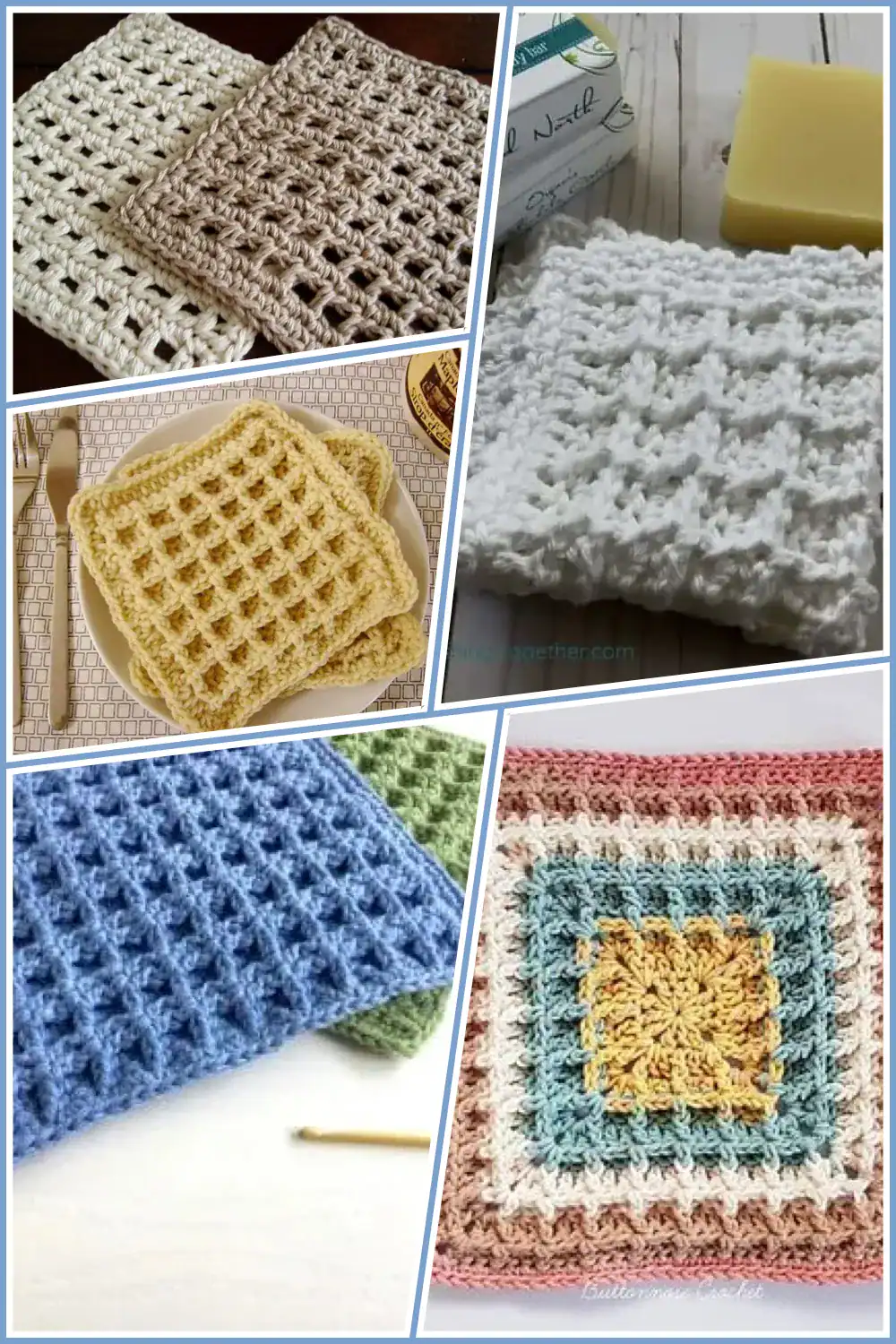 Today we’re sharing all different kinds of crochet dishcloth patterns including granny squares, circles, waffle stitch and free patterns for you to try!