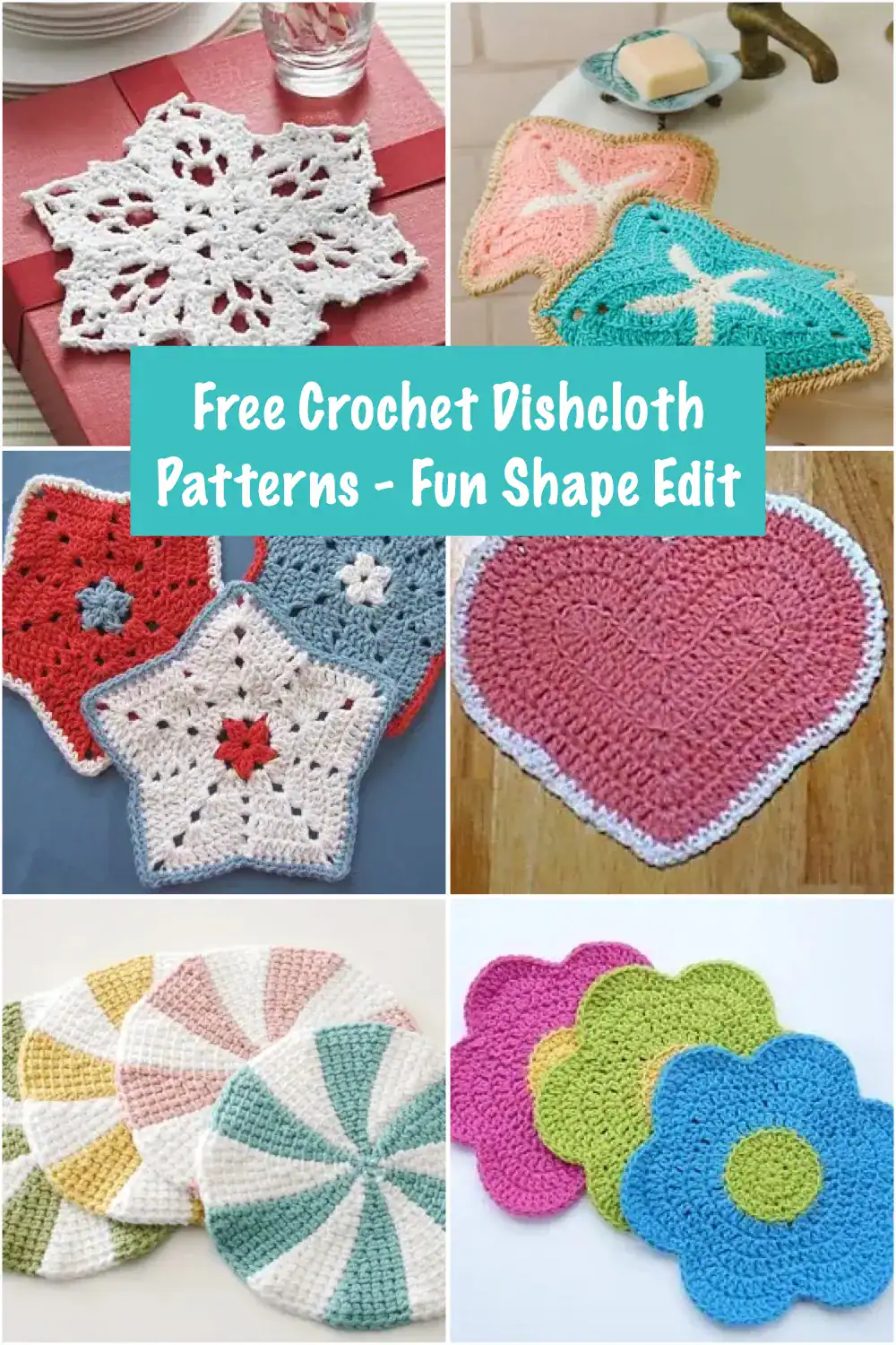And now let’s finish up this collection with some free crochet dishcloth patterns in fun shapes and designs. These are wonderful weekend projects and you can use them in your own kitchen or pair them with your favorite dish soap to make a thoughtful gift for a teacher or a housewarming.